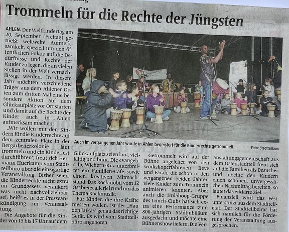 Kinderfest zum Weltkindertag am 20.09.2024 auf dem Glückaufplatz.